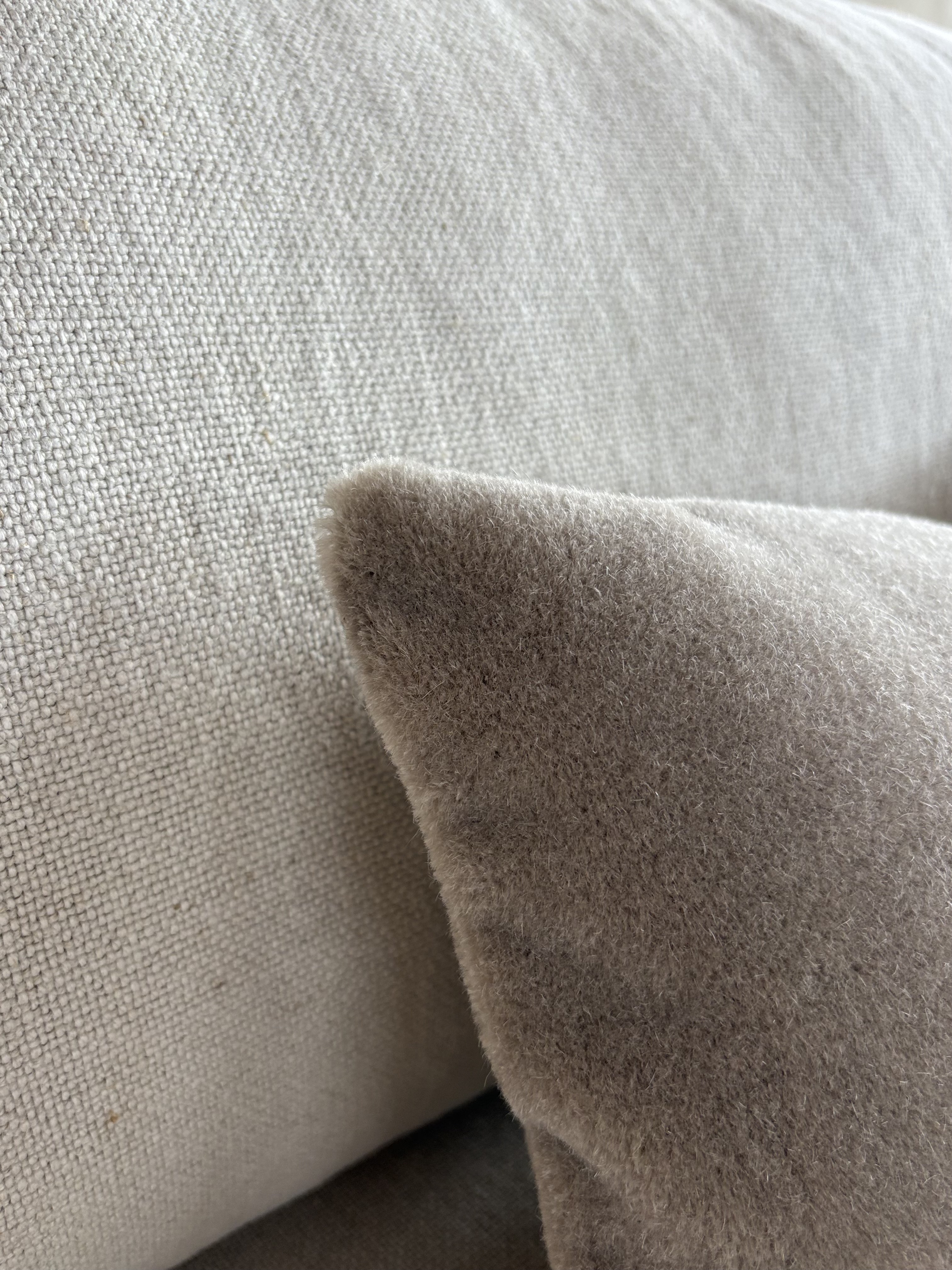 Mohair sierkussenhoes Amy is pure luxe, verfijnd en zacht. De voorzijde van de hoes is gemaakt van Cradle to Cradle® Bronze-gecertificeerd mohair: het haar van Zuid-Afrikaanse angorageiten. Deze geiten worden zeer goed verzorgd en doordat deze dieren op slechts enkele plekken ter wereld leven, is het materiaal zeer exclusief.